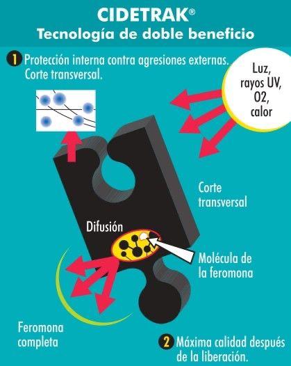 Los difusores de feromonas tienen una duración aproximada de entre 150 y 180 días, dependiendo del tipo de feromona y del difusor utilizado, cubriendo prácticamente toda la campaña del cultivo.